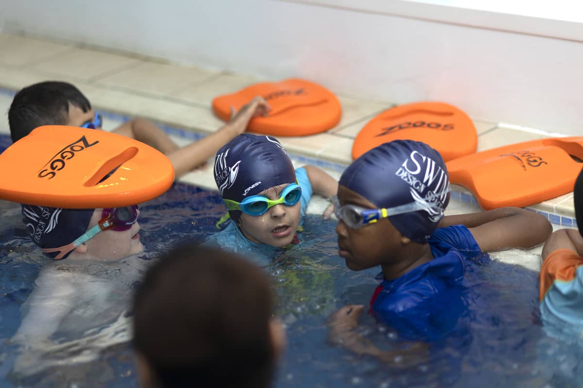 Swim Design Space runs children’s classes here in small, ability-grouped sessions following Swim England Stages 1–10. Each class combines fun activities with technical instruction, from kicking and breathing drills to stroke coordination and turns.